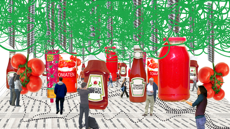 "Als würden Streifen aus dem Ackerland geschnitten – so wirkt das gefaltete und begrünte Dach des Entwurfs. Es wird ebenso genutzt wie der Innenraum, denn die Besucherschlange soll über das Dach zum Eingang geführt werden, vorbei an Maisfeldern und Blumenwiesen. Im Inneren dann zeigt eine Ausstellung, was in Deutschland auf den Teller kommt – und was der Konsument damit gegebenenfalls weltweit anrichtet. Wie werden Bananen angebaut? Wie leben die Tiere, die wir verzehren? Unter welchen Bedingungen arbeitet der Kaffeebauer, der unseren Frühstückskaffee anpflanzt?